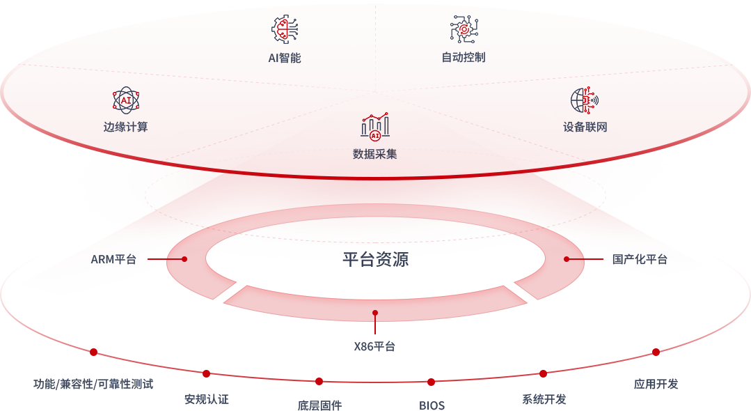 覆盖IIOT、ICT、IOT,给予主板、工业整机、工业网关、工业交换机、服务器等覆盖端边云网一站式解决方案